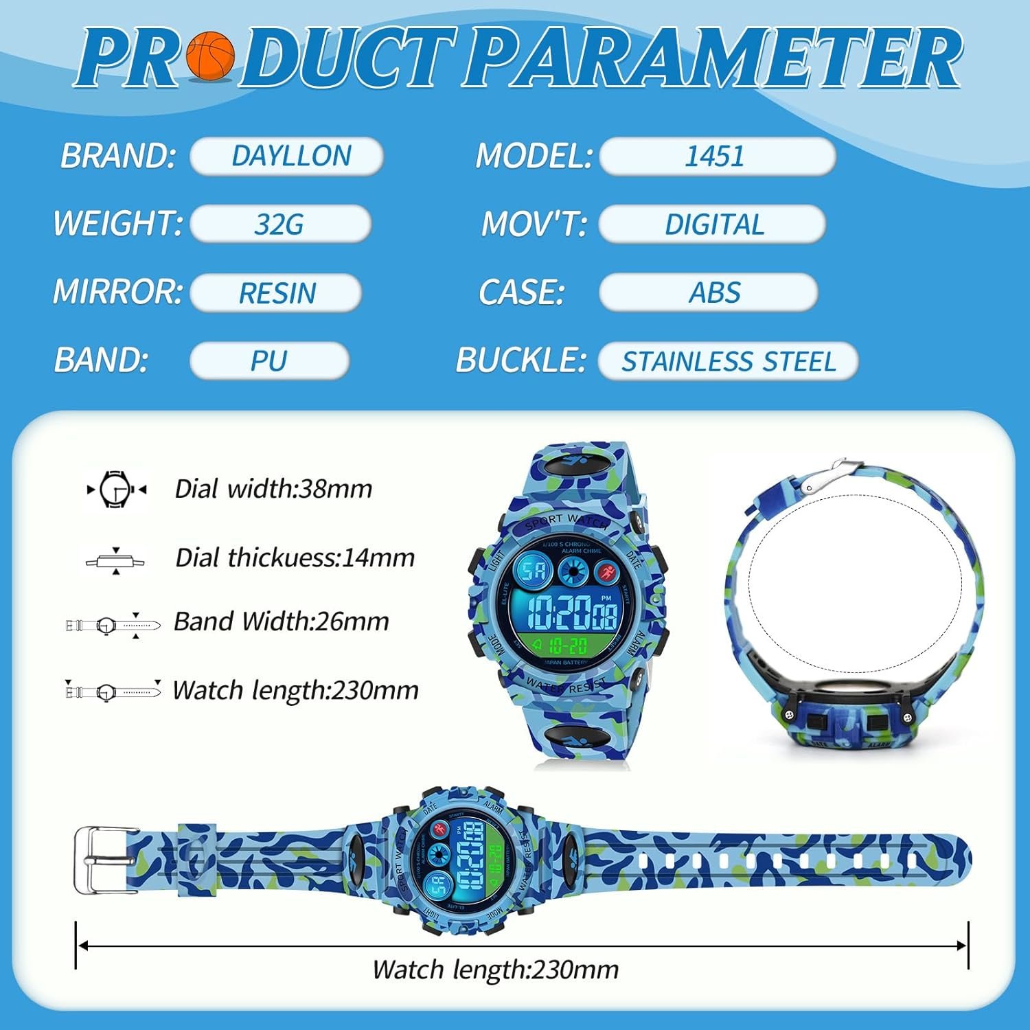 • Watch Digital Outdoor Sport Waterproof Boys Watches