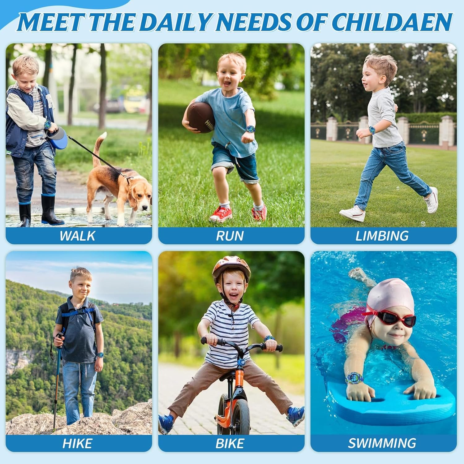 Rechargeable Water-Resistant Digital Watch Time Gift for Kids, Blue