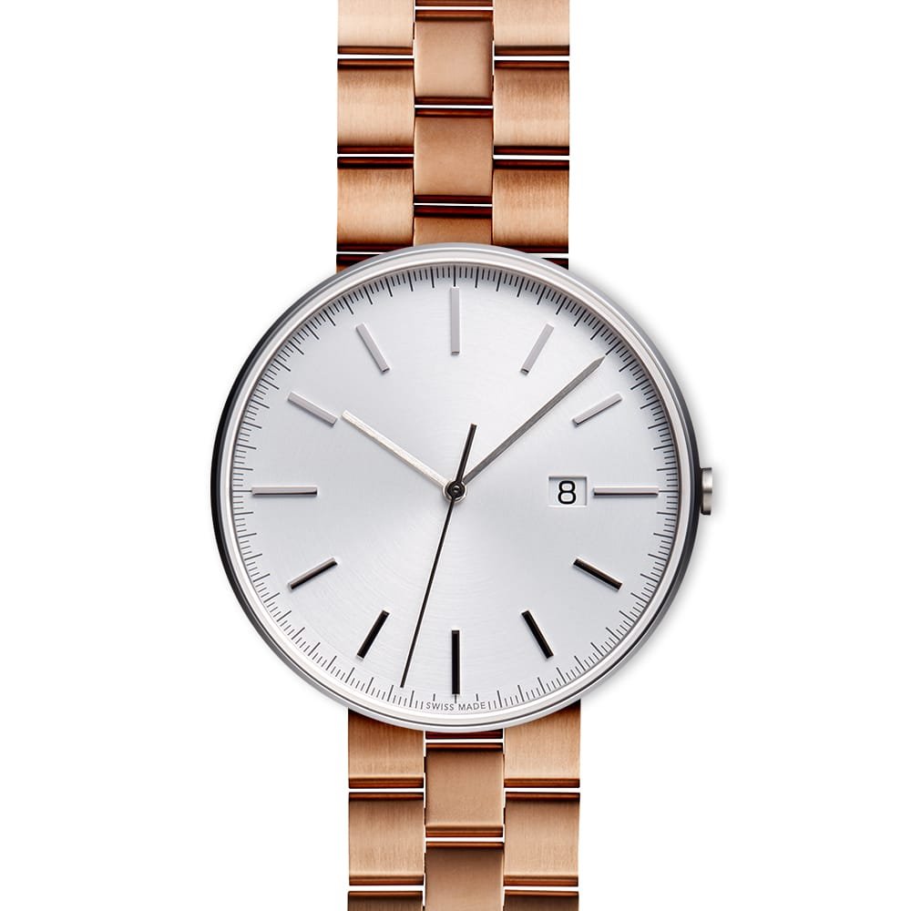 PVD rose gold linked watch bracelet with butterfly clasp